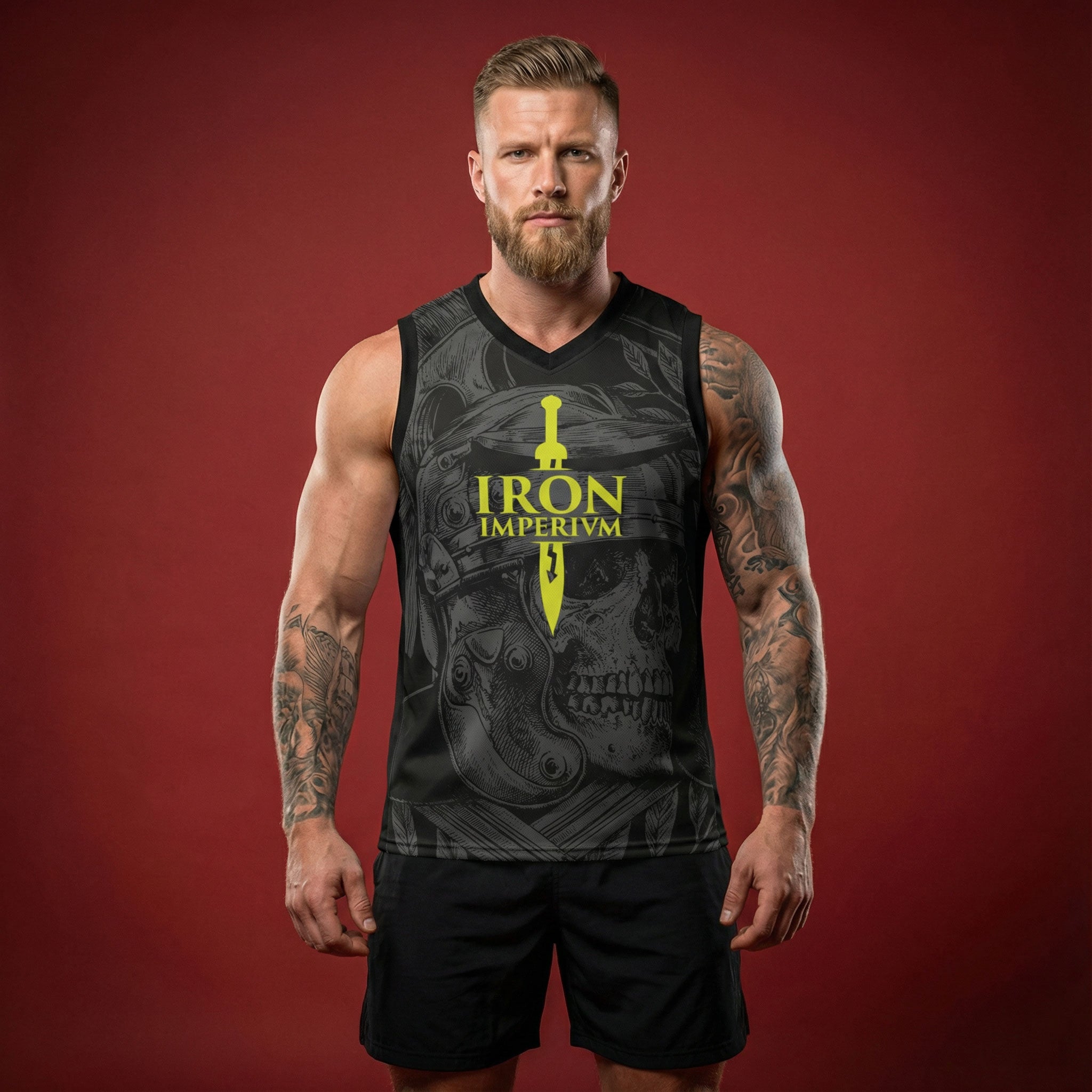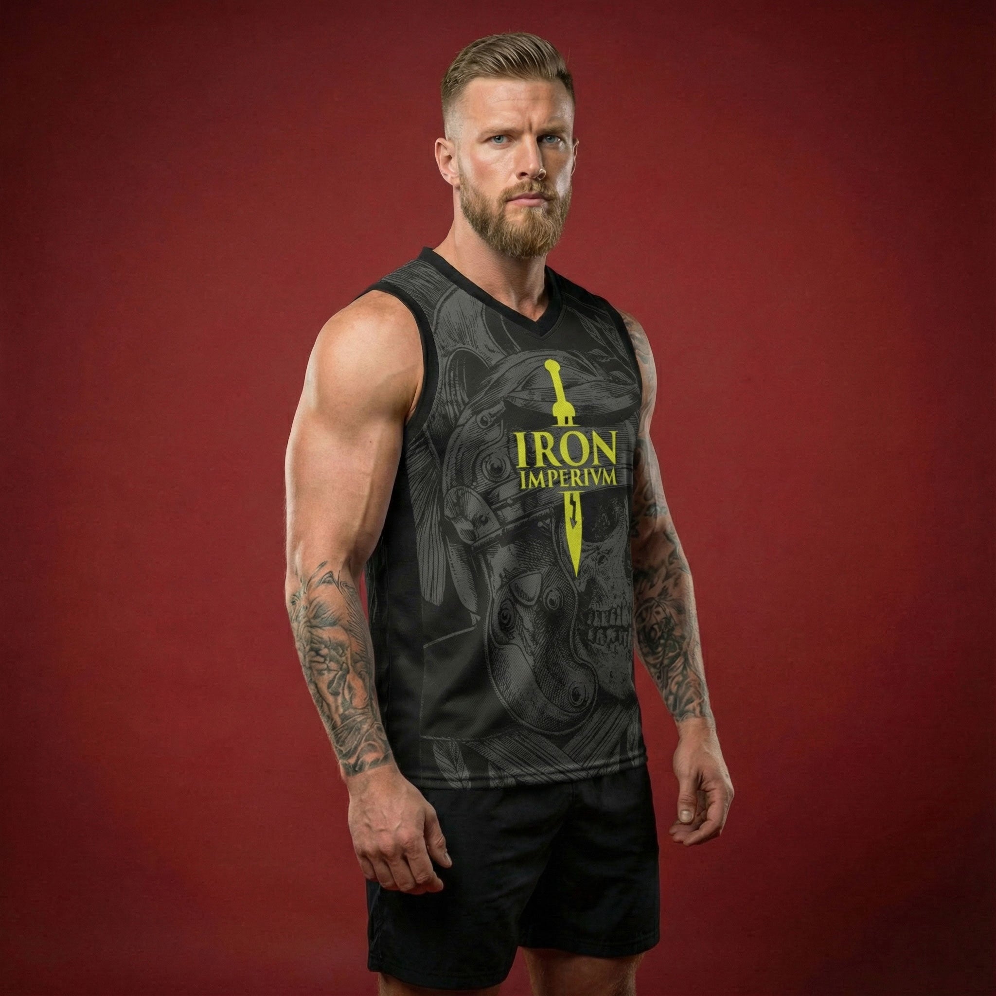 The Immortal Praetorian Tank Top Jersey is a high-performance activewear piece by Iron Imperium, designed for the modern gladiator. It functions as a technical basketball and training jersey and is distinguished by its unique all-over design inspired by the elite guard of the Roman Empire. Ancient Roots, Modern Defiance. Dare. Prevail. Iron Imperium